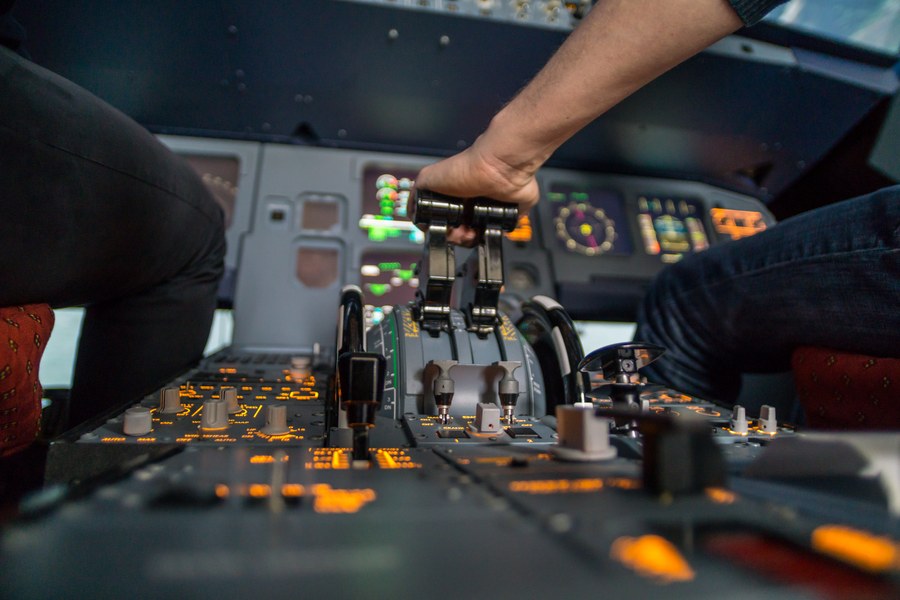 The true to original replica of an Airbus A320 flight deck, used as a Fixed-base Flight Training Device, allows simulation of countless aspects utilized during flight operations, including manual control of the aircraft through Fly-by-wire technology using real side-sticks.